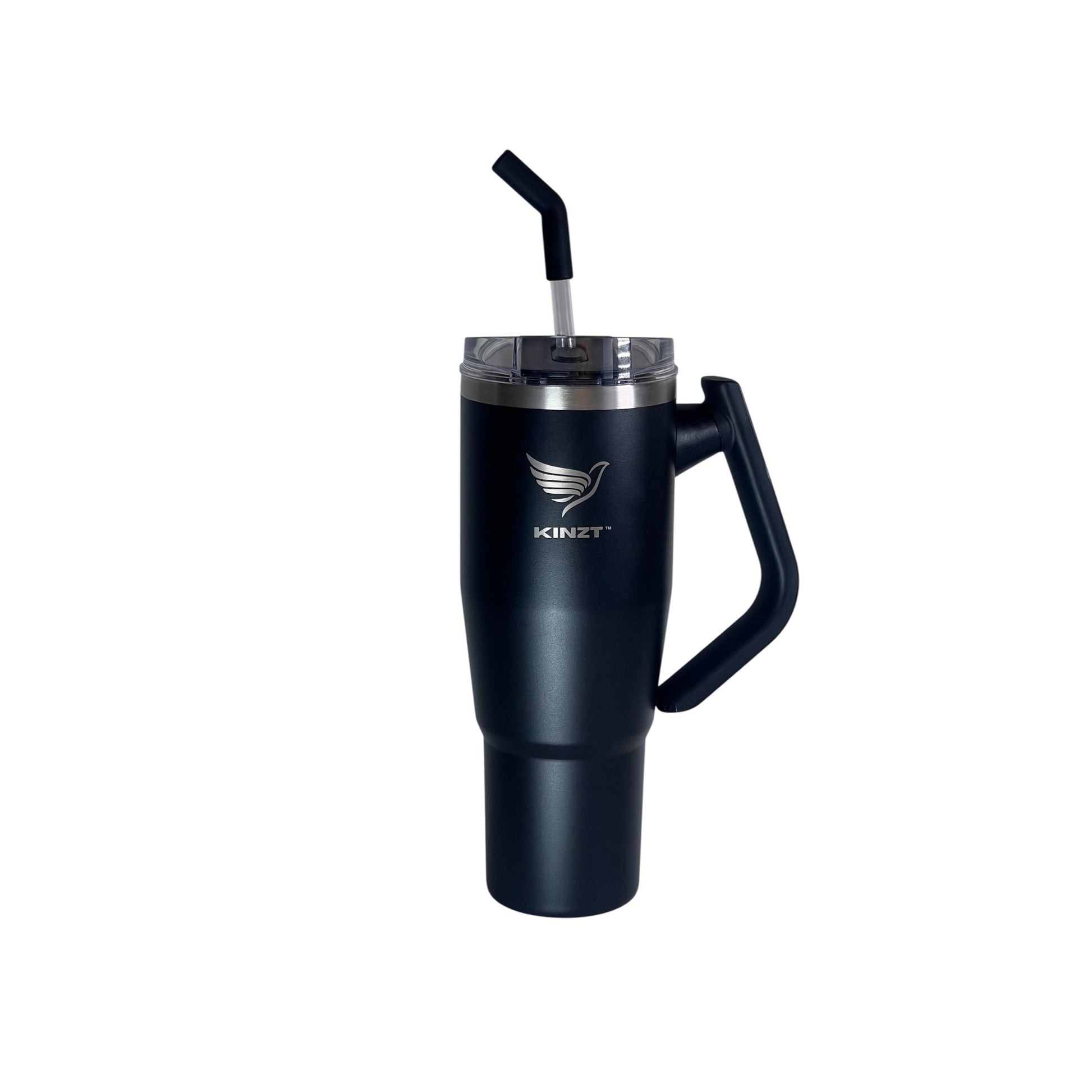 Whether you're heading to the office, gym, beach or a long road trip, this Obsidian travel tumbler with handle and straw is built to go wherever life takes you and look good doing it.