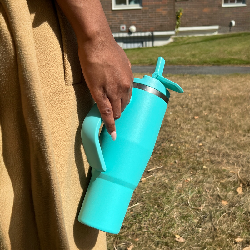 Whether you're heading to the office, gym, beach or a long road trip, this Seafoam travel tumbler with handle and straw is built to go wherever life takes you and look good doing it.